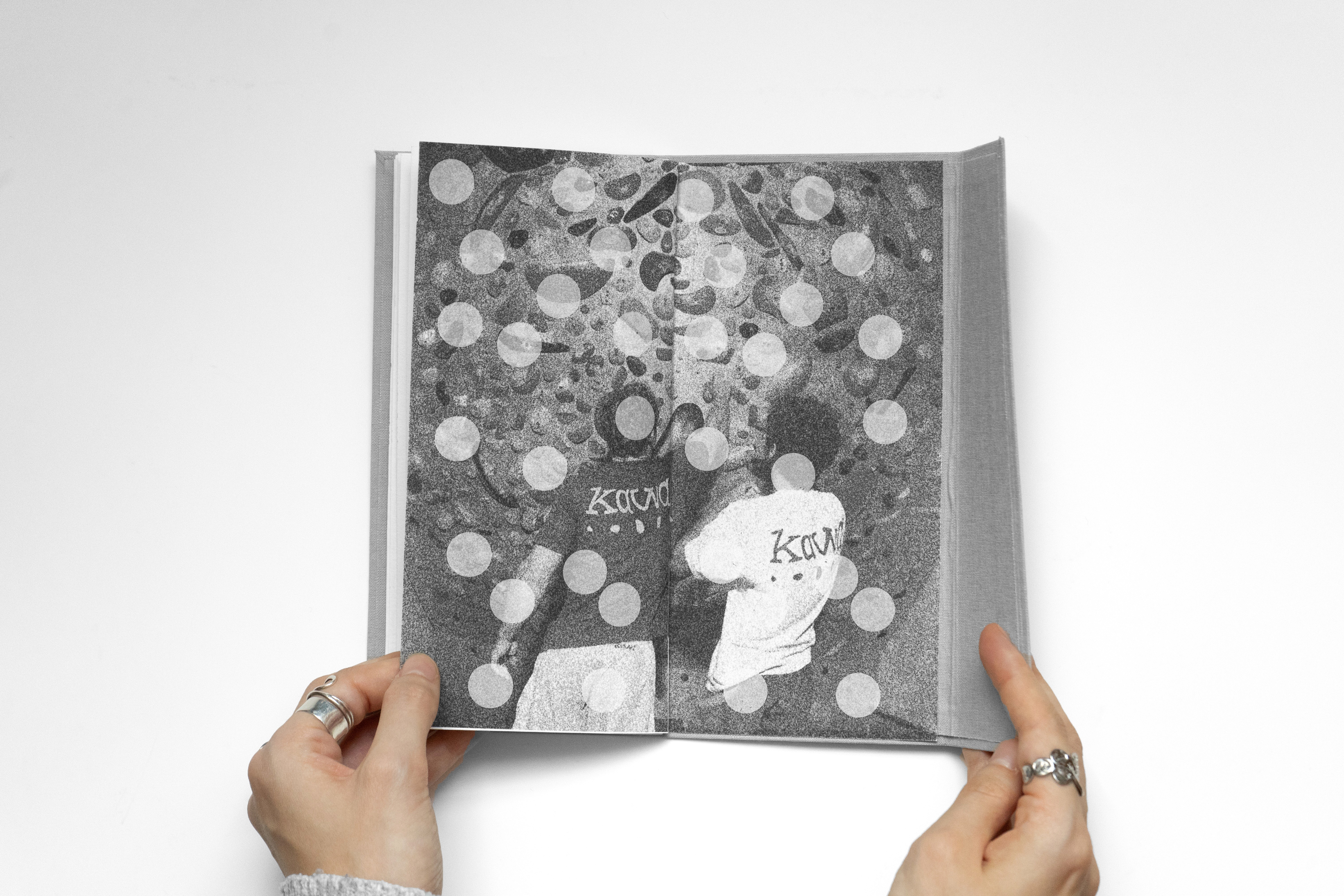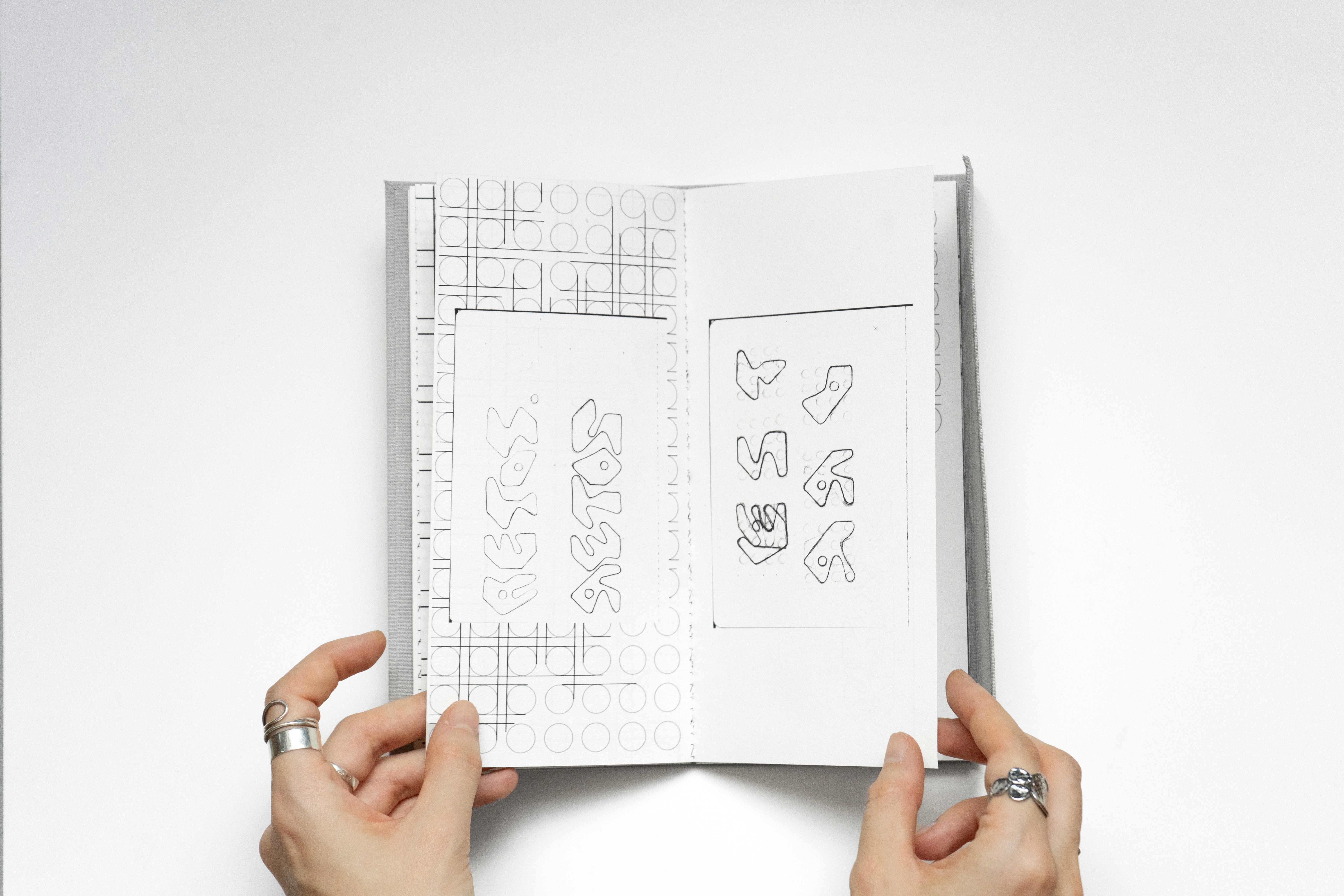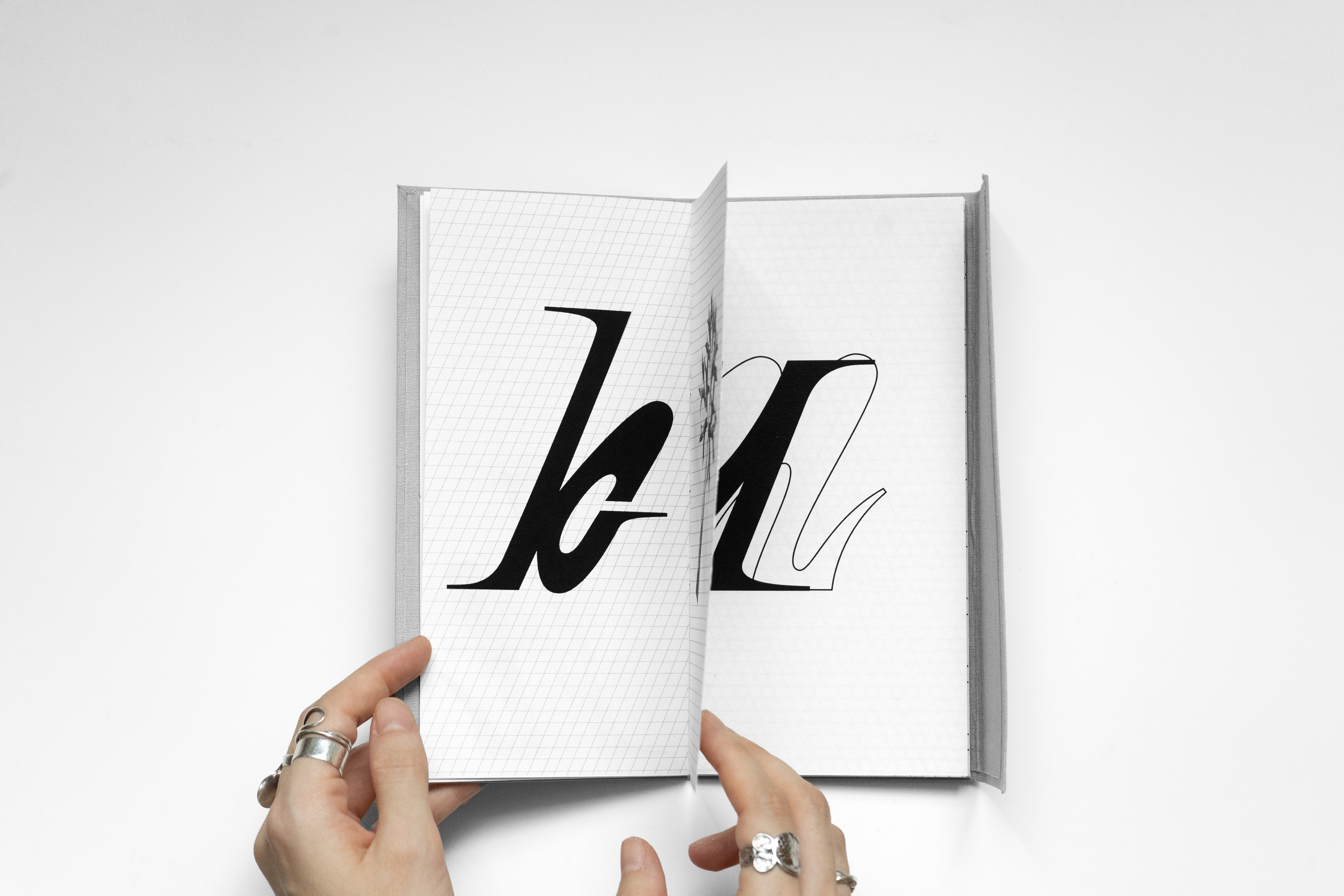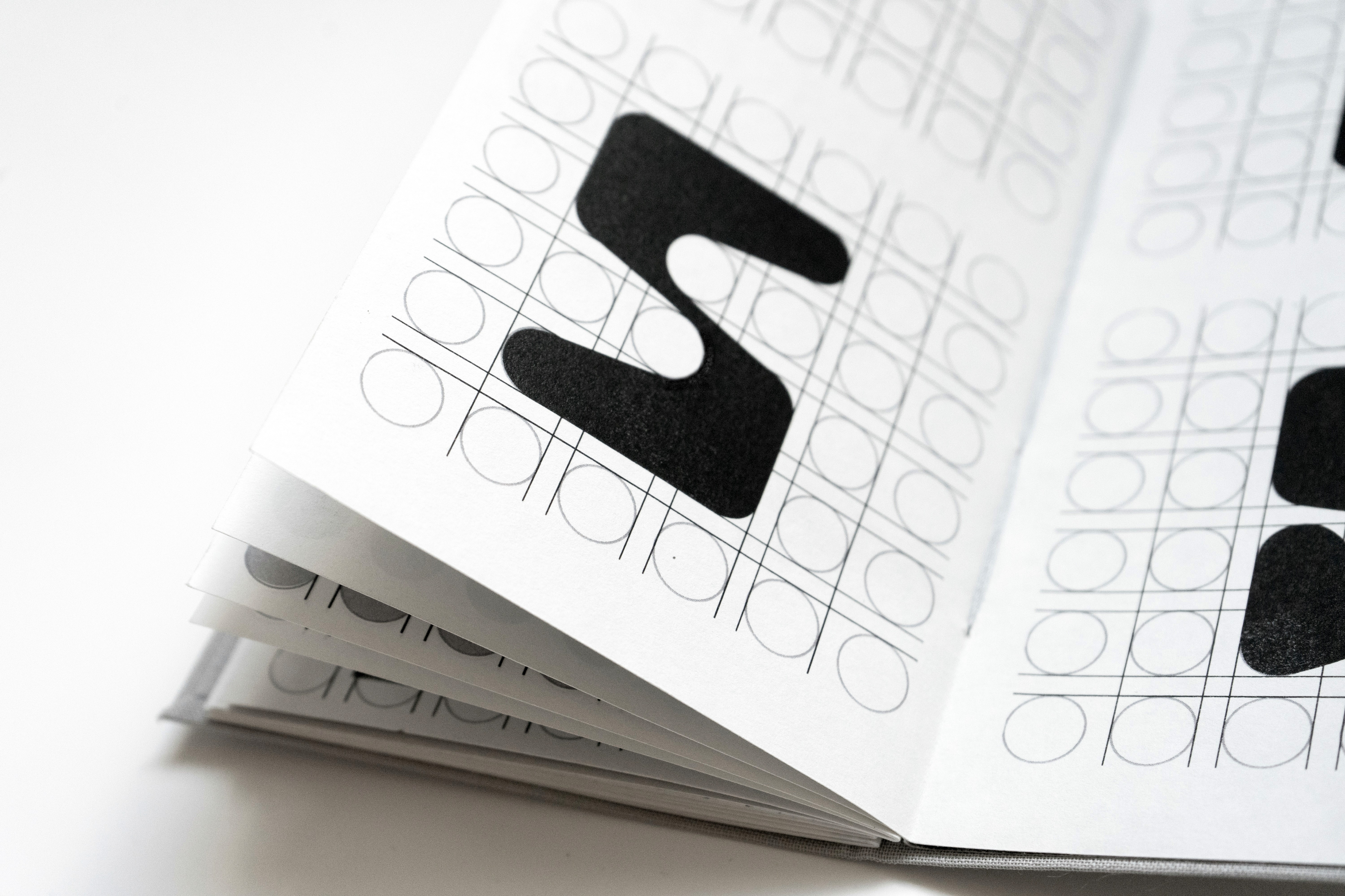 Un spécimen typographique réunissant deux créations : une italique à empattements et une typographie modulaire construite sur une grille de cercles. L’édition présente à la fois les lettres finalisées mais également leurs recherches et expérimentations. L’objet est entièrement façonné à la main avec une couverture en tissu.