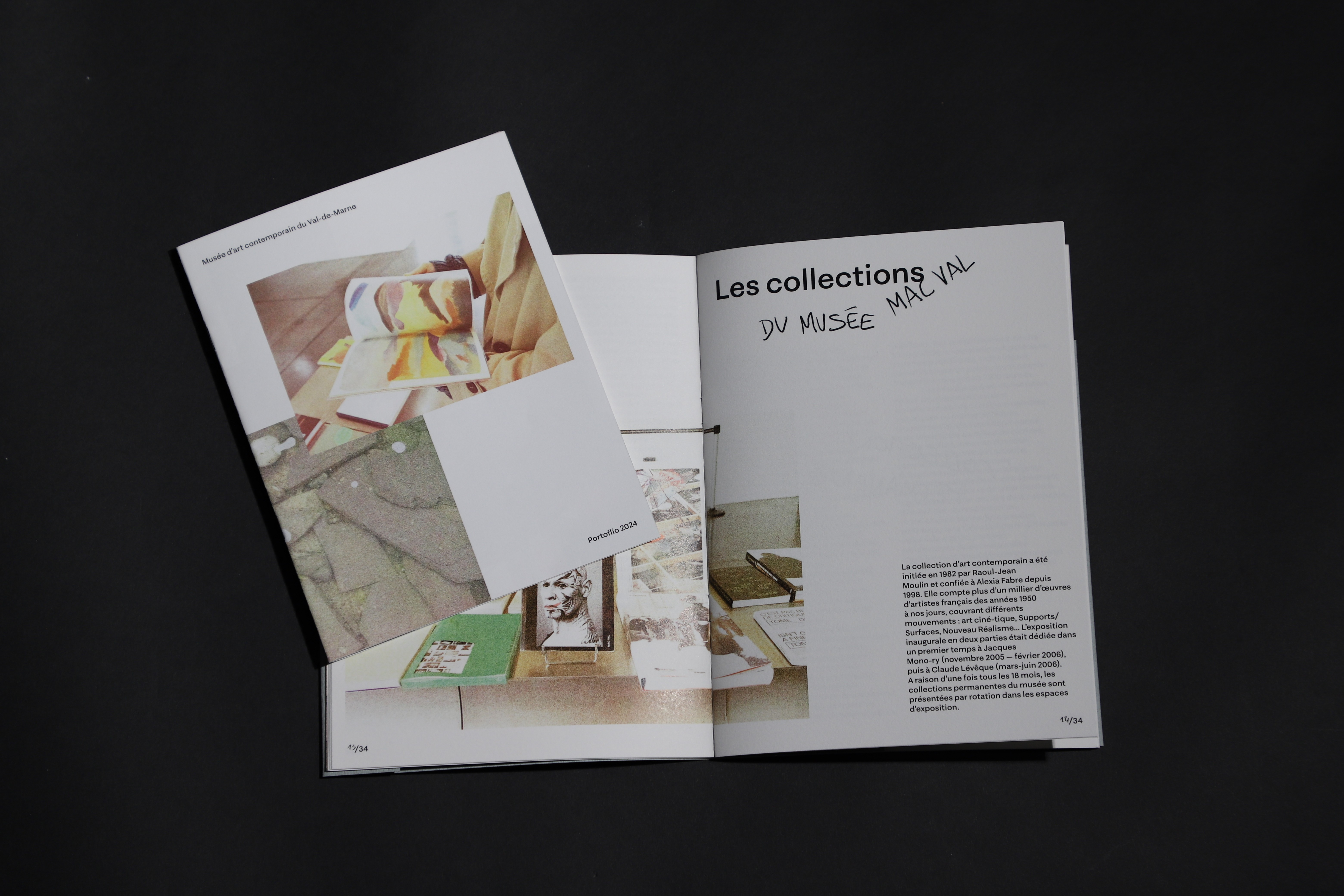 Brochure pour le MAC VAL : un support qui présente le musée et ses collections phares. En complément, un mini-portfolio intégrant des photographies des œuvres exposées.